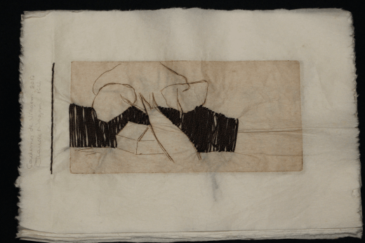 Descrição: 6 gravuras em metal sobre papel de arroz, ponta seca, água tinta e bordados.